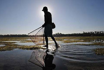 (FILES) Photo taken on October 19, 2008 shows Filipino fisherman Manuel Honrado catching fish in the waters of Bolinao town in Pangasinan province northern Philippines. Leaders from six countries -- Indonesia, the Philippines, Malaysia, East Timor, Malaysia, the Solomon Islands and Papua New Guinea -- will meet on the sidelines of the World Ocean Conference in Manado, Indonesia to launch a plan to save the Coral Triangle, an underwater ecosystem that is home to more than half the world's coral reefs.
