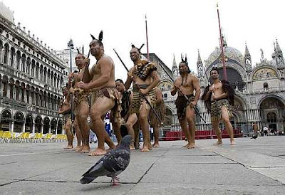Members of traditional Maori group "Waka Huia" perform in San Marco square, as part of the opening of the New Zealand pavilion at the Venice Biennale June 3, 2009.