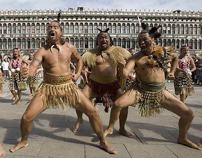 Members of traditional Maori group "Waka Huia" perform in San Marco square, as part of the opening of the New Zealand pavilion at the Venice Biennale June 3, 2009