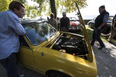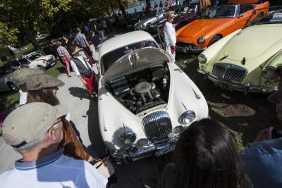| People admire classic old cars, during the 21st Swiss Classic British Car Meeting in Morges, Switzerland, 06 October 2012. Around 1,500 oldtimers are presented during the meeting |