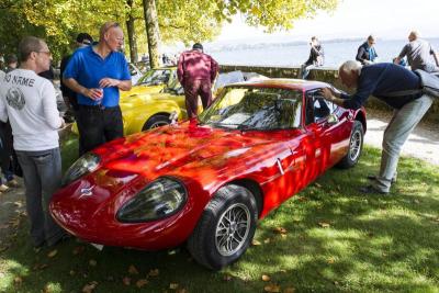 | People admire the classic old car from Marcos, during the 21st Swiss Classic British Car Meeting in Morges, Switzerland, 06 October 2012. Around 1,500 oldtimers are presented during the meeting |