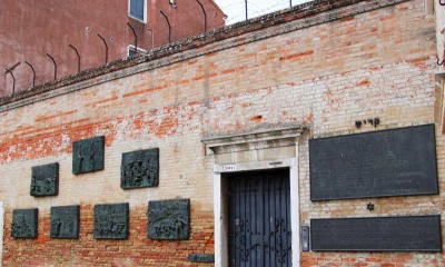 This Nov. 10, 2013, photo shows a memorial for Venetian Jews killed in the holocaust. The bas-relief sculpture, by Arbit Blatas, is in Campo di Ghetto Nuovo, the main square of the former Jewish district.