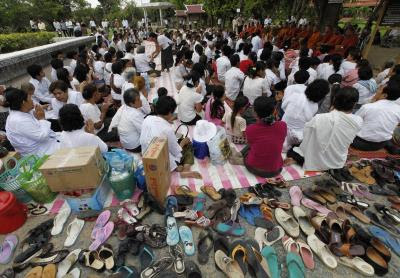 Cambodian people pray during a ceremony for the victims who died during the Khmer Rouge regime at Choeung Ek Genocidal Center in Phnom Penh, Cambodia, 17 April 2011. Cambodians marked the 36th anniversary of the Khmer Rouge victory which plunged the nation into one of the worst genocides of the last century.