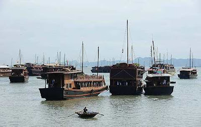 Tourist boats are seen anchored at Halong Bay in northern Vietnam on February 17, 2011. Twelve people, most of them foreign tourists, died on February 17, when their tour boat suddenly sank while they slept in Halong Bay, one of Vietnam's top tourist destinations, officials said