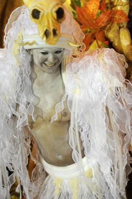 A reveller from Porto da Pedra samba school parades on the first night of the annual Carnival parade in Rio de Janeiro's Sambadrome February 20, 2012