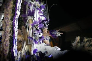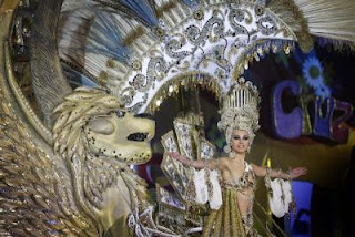 9A nomine for Queen of the Santa Cruz carnival shows off her outfit under the watchful eyes of the jury at Santa Cruz de Tenerife on the Spanish Canary island of Tenerife, February 15, 2012