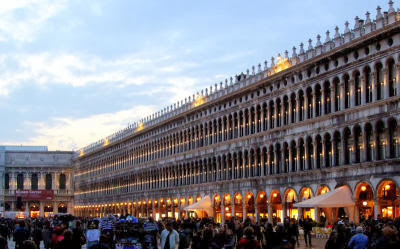 This Nov. 9, 2013, photo shows St. Mark's Square in Venice in the early evening. The city's main gathering place, the square is a great place for free people- and pigeon-watching.