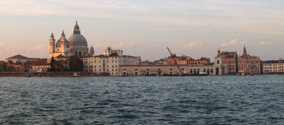 This Nov. 9, 2013, photo shows the Basilica di Santa Maria della Salute at sunset as seen from the water to the south. The church, built after plague broke out in the 17th century, is a fixture of the city's skyline.