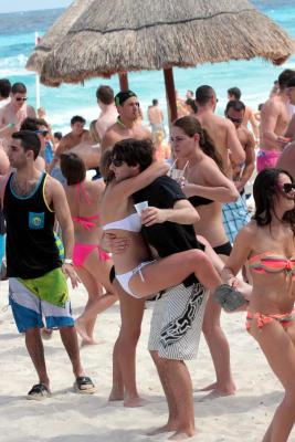 Hundreds of 'springbreakers' enjoy the beach at Cancun, Yucatan peninsula, Mexico, on 18 March 2012, where the hotel industry expects to receive an average of 50,000 students from various U.S. locations for their 'Spring break' vacations.
