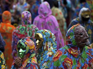 Revellers of the Unidos do Morro Carnival block parade during the traditional celebration in Obidos, a remote town on the banks of the Amazon River that is named after the ancient town of Obidos in Portugal, February 20, 2012. Carnival celebrations here date back to 1894, according to local historians.