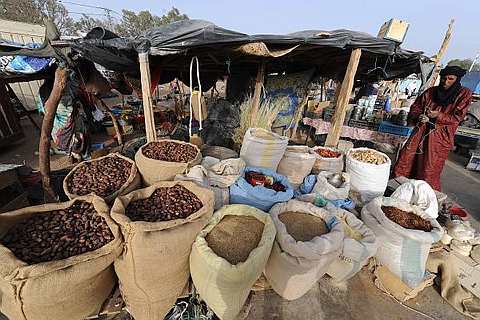 Men sell various products at a market during the annual economic festival of Assihar in Tamanrasset on April 4, 2011. The annual festival presents Tuareg culture—concerts, dances, traditional games, presentation of artisans' works, and many more events make up the program